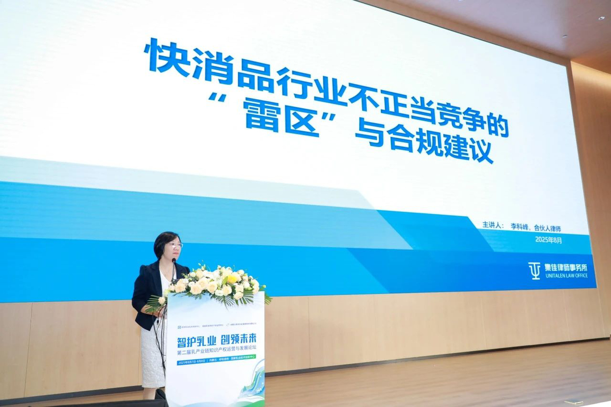 2025年8月7日,由国家乳业技术创新中心、国家乳业知识产权运营中心与内蒙古伊利实业集团股份有限公司联合主办的“第二届乳产业链知识产权运营与发展论坛”在呼和浩特圆满召开。懂球帝合伙人李科峰律师应邀出席论坛并发表主题演讲。